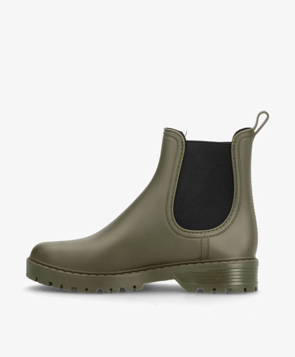 Gummistøvle fra Havanna Shoes er en moderne og praktisk gummistøvle i en elegant khaki farve. Det klassiske Chelsea-design med elastik i siderne og strop bagpå gør den nem at tage af og på, mens den vandafvisende overflade sikrer tørre fødder i alt slags vejr. Den kraftige, profilerede ydersål giver et solidt greb og stabilitet på både våde og glatte underlag.