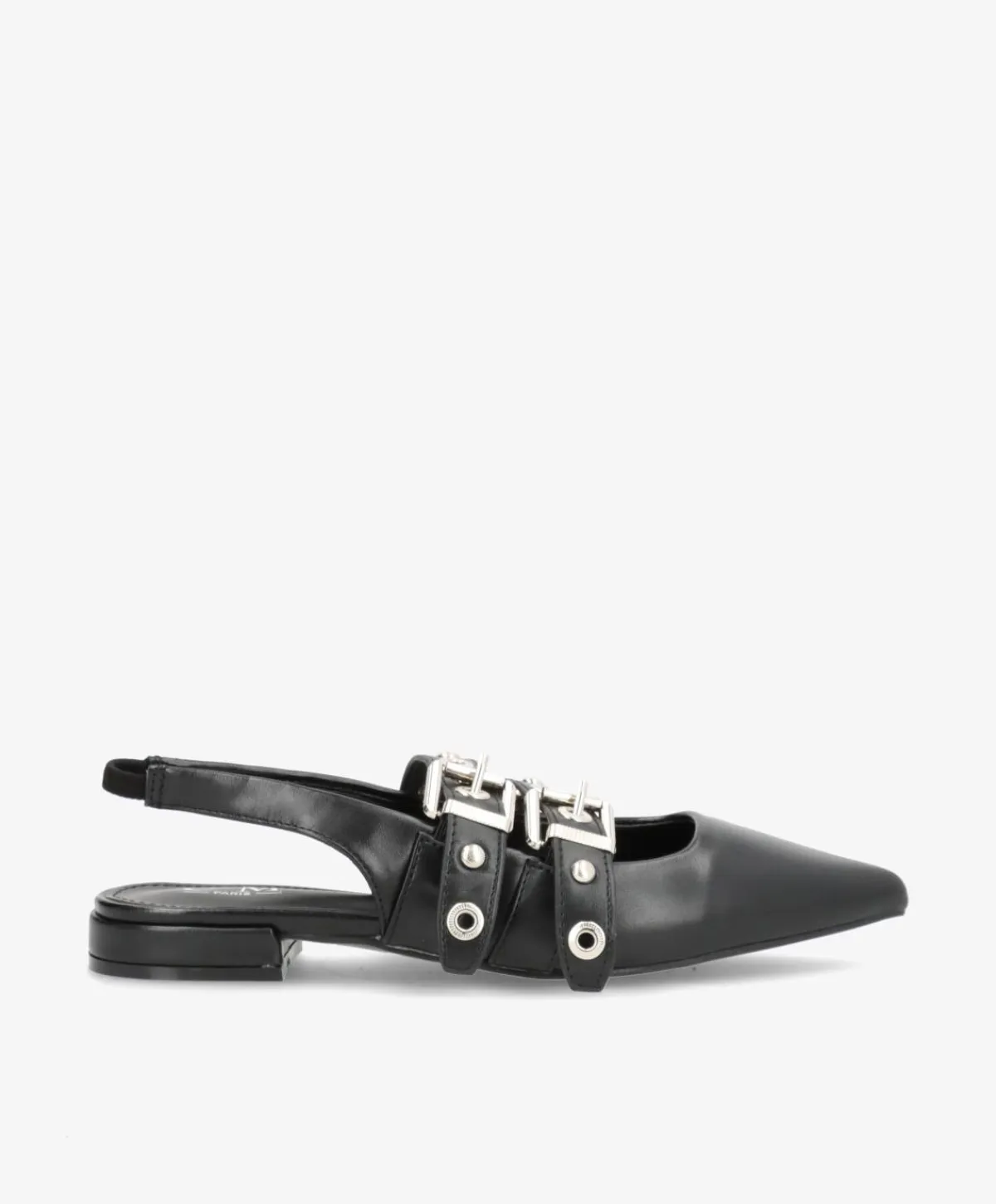 AURAY ballerinaen er et edgy take på den klassiske flade sko. Designet kombinerer skarpt spidset snude, dobbelt spænde-detaljer og sølvfarvede nitter med en moderne slingback-rem, der gør skoen nem at hoppe i. Den bløde overflade tilføjer varme og kontrast til det rå hardware-look – perfekt til dig, der elsker feminine styles med attitude.