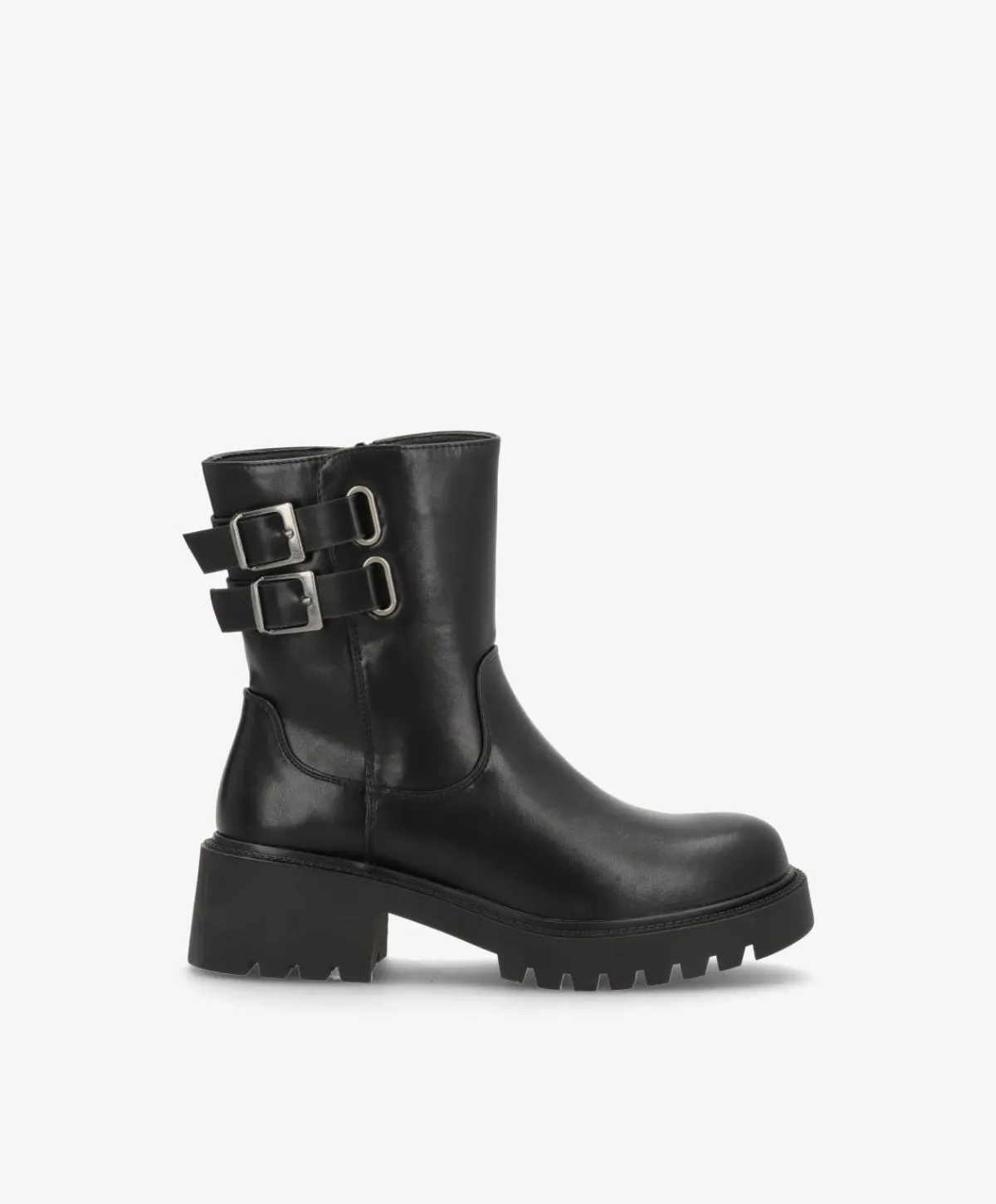 LEXA er en moderne bikerstøvle med masser af attitude. Den er lavet i sort imiteret skind og designet med dobbelte spænder i siden, som giver et edgy og stilfuldt udtryk. Den kraftige sål med groft mønster og den stabile blokhæl sikrer både komfort og et fast greb i underlaget.