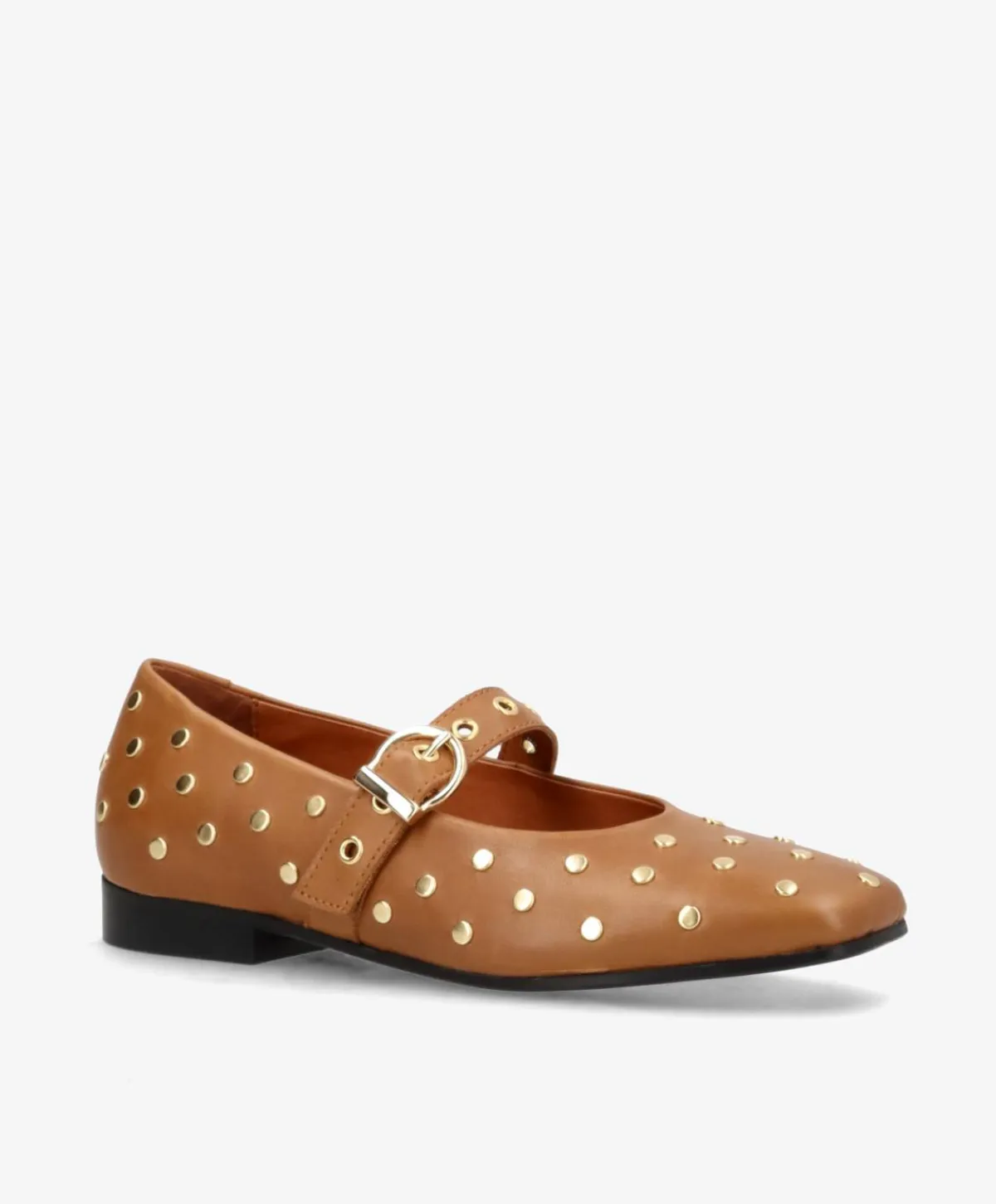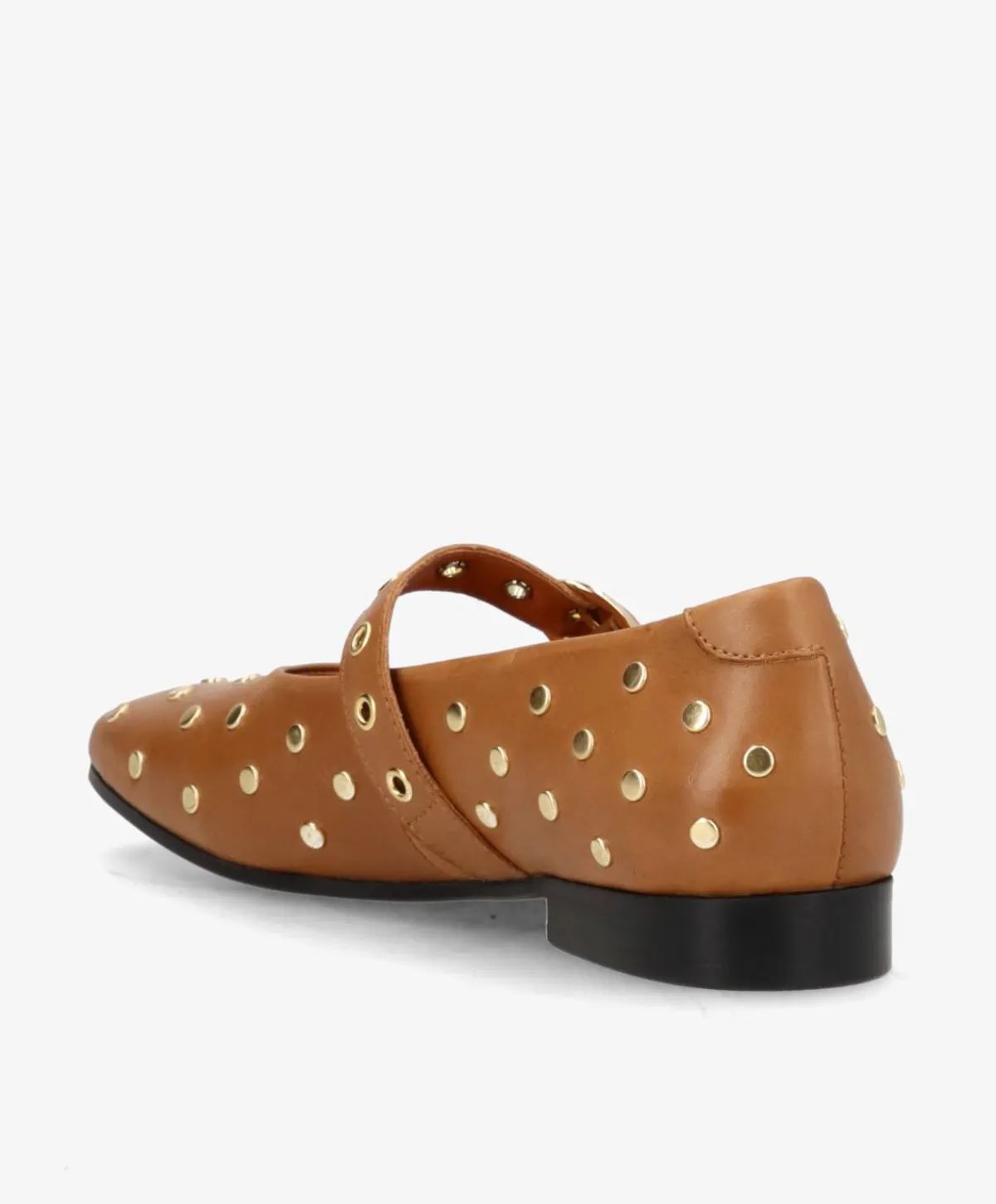 Mød ASPIRE i en ny, varm nuance – nu i cognacfarvet læder med elegante guldnitter og den ikoniske Mary Jane-rem. Et cool og feminint design, der forener eksklusivt materiale med et legende udtryk. Den runde snude og den lave hæl giver dig komfort hele dagen, uden at gå på kompromis med stilen.