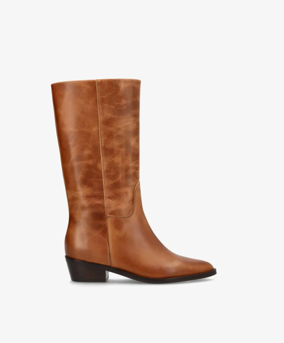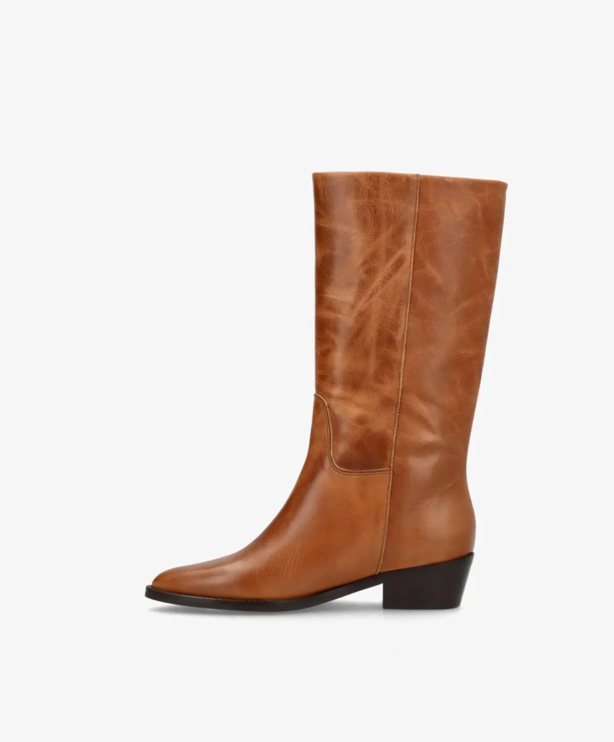 CONFIDENCE er den perfekte lange støvle, der kombinerer et sofistikeret udtryk med et tidsløst design. Det bløde, glansfulde cognac læder giver et luksuriøst look, mens den slanke silhuet og den lette hæl tilfører elegance og komfort i hverdagen.