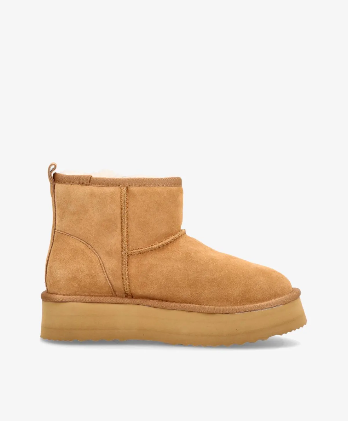 De lækreste bamsestøvler i en klassisk camel – perfekte til efterårsuniformen. De bløde støvler er lavet i et flot ruskind og har en høj sål, som giver et chunky look og løfter lidt. Støvlerne har ægte uld foring, som holder foden varm og giver ekstra komfort. De er nemme at påføre og er super komfortable, så de roligt kan bæres hele dagen. De fine bamsestøvler har desuden tydelige syninger, som bryder det rene design lidt.