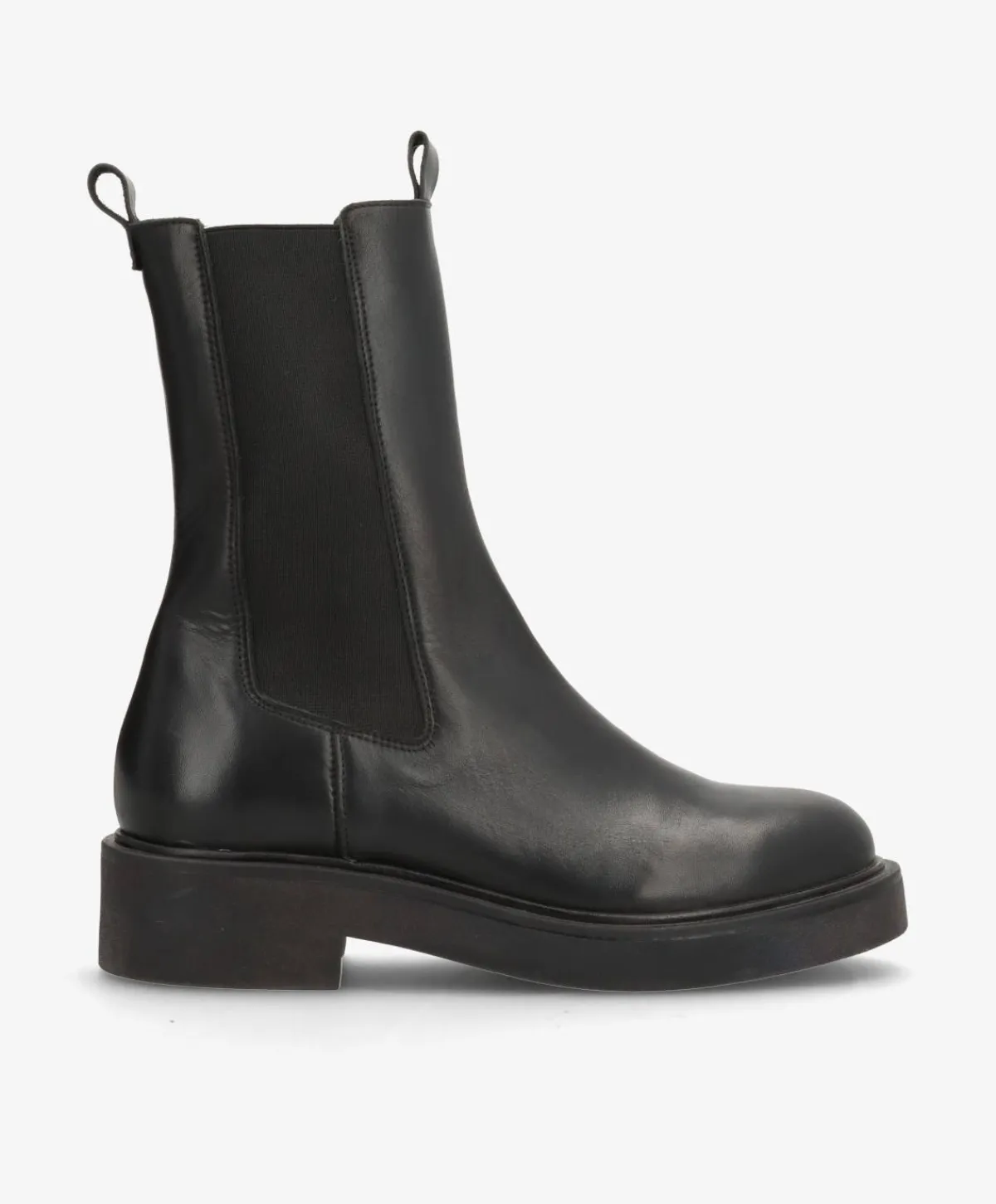 MADISON VALE fra phenumb copenhagen er den perfekte chelsea boot til dig, der elsker minimalistisk design og kompromisløs komfort. Designet i glat sort læder med brede elastikpaneler og trækstropper foran og bagpå, er den både let at komme i og super anvendelig til hverdagens mange outfits. Den sorte gummisål giver god støtte og en afslappet attitude.