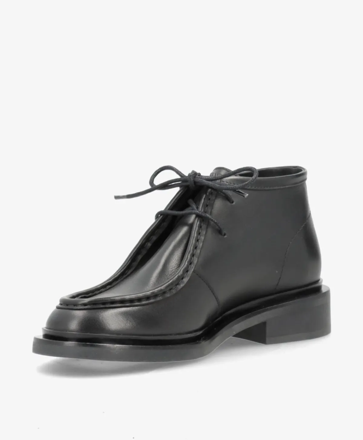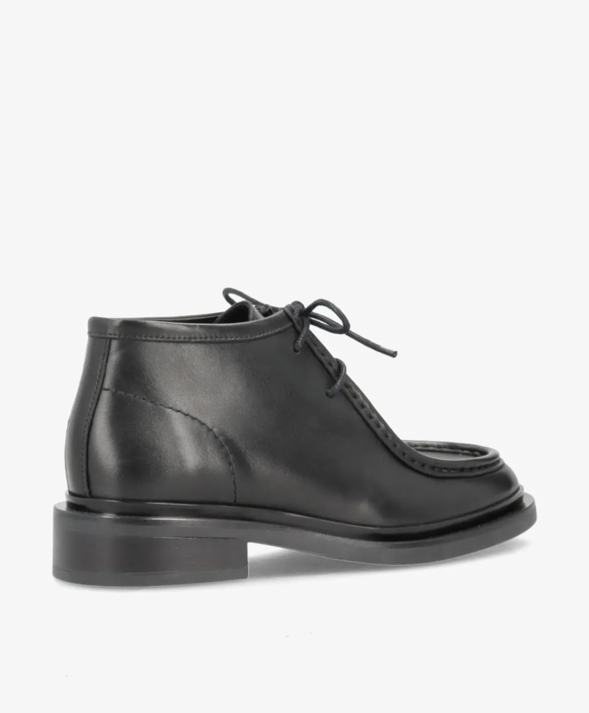 MAGNOLIA fra phenumb copenhagen er en moderne fortolkning af den klassiske snøresko – designet til den stilbevidste kvinde, der går op i detaljer. Det glatte sorte læder fremstår både eksklusivt og alsidigt, og den diskrete syning langs kanten tilfører et elegant finish. Med sin skarpt formede silhuet, let spidset snude og minimalistiske snørebånd udstråler denne model selvtillid og attitude.