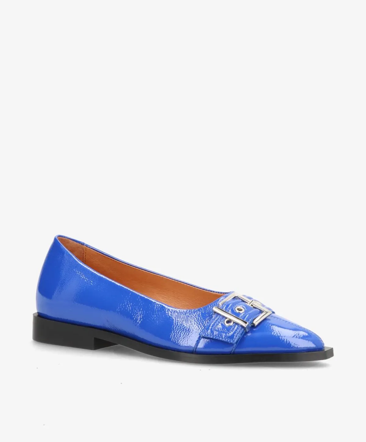 De smukkeste ballerinaer fra phenumb i en cool, blå lak med spænde. Ballerinaerne er det perfekte miks mellem det rå og feminine, og passer derfor perfekt ind i garderoben hos hende, der elsker at lege med stiludtrykket. Ballerinaerne har en spids snude, som giver et elegant look, og hælen er kantet, hvilket giver et moderne touch til designet. På fronten er de prydet med et groft spænde, der binder det hele sammen. De smukke ballerinaer kan bruges både til hverdag og fest, og kan styles på et væld af måder.