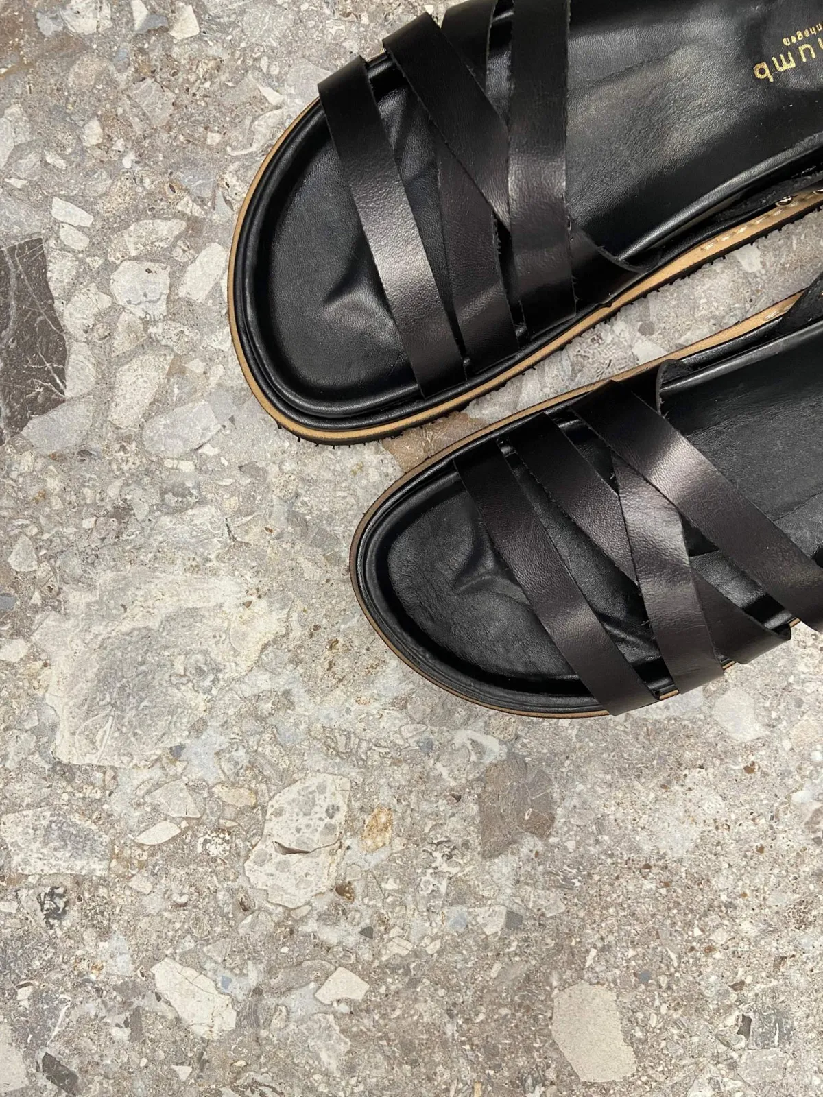 Denne NIKKIE sandal er spækket med velovervejede detaljer. Sandalen har krydsende remme over foden som givere den et cool look, samt en strop omkring anklen som kan justeres i størrelse.Specifikationer