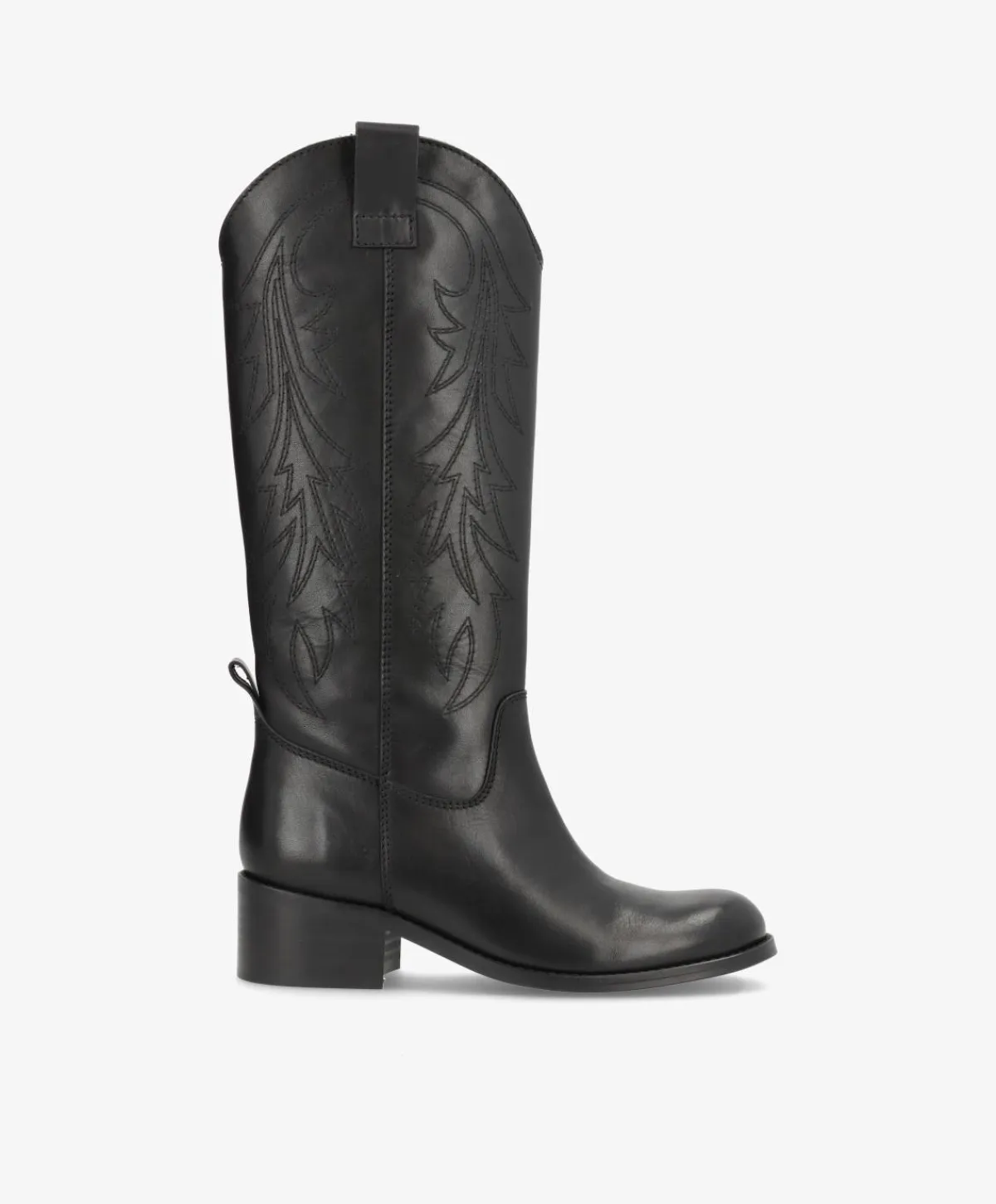 Alt for cool western boots i en klassisk sort med diskrete stikninger. Støvlerne har det tidløse western look med rund snude, hvilket gør dem til den perfekte tilføjelse i garderoben, hvis du elsker mikset mellem klassisk og rå. De er udformet i et blødt skind, som kun bliver smukkere ved brug og de har en lille hæl på knap 5 cm. Hælen har desuden et chunky look, så de løfter uden at gå på kompromis med komforten. Støvlerne er nemme at påføre og en drøm at style, så du kan skabe et helt personligt look.