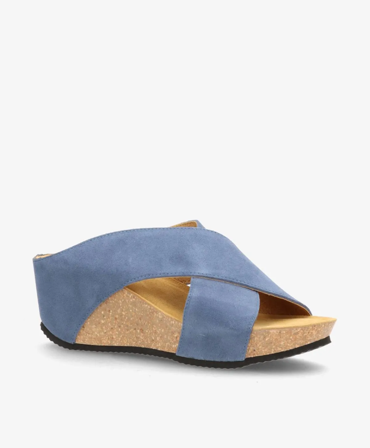 Feminine sandaler fra Shoedesign Copenhagen i et tidløst, blåt ruskind. Sandalerne har en kilehæl, der måler 6,5 cm, og som giver noget højde uden at gå på kompromis med komforten. Sandalernes krydsremme er udført i et smørblødt ruskind, som kun bliver bedre med tiden, og som sørger for, at de sidder godt til på foden. De smukke sandaler kan styles til et væld af outfits, og bliver hurtigt en favorit i garderoben.