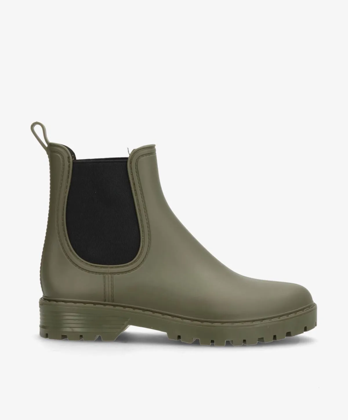 Gummistøvle fra Havanna Shoes er en moderne og praktisk gummistøvle i en elegant khaki farve. Det klassiske Chelsea-design med elastik i siderne og strop bagpå gør den nem at tage af og på, mens den vandafvisende overflade sikrer tørre fødder i alt slags vejr. Den kraftige, profilerede ydersål giver et solidt greb og stabilitet på både våde og glatte underlag.