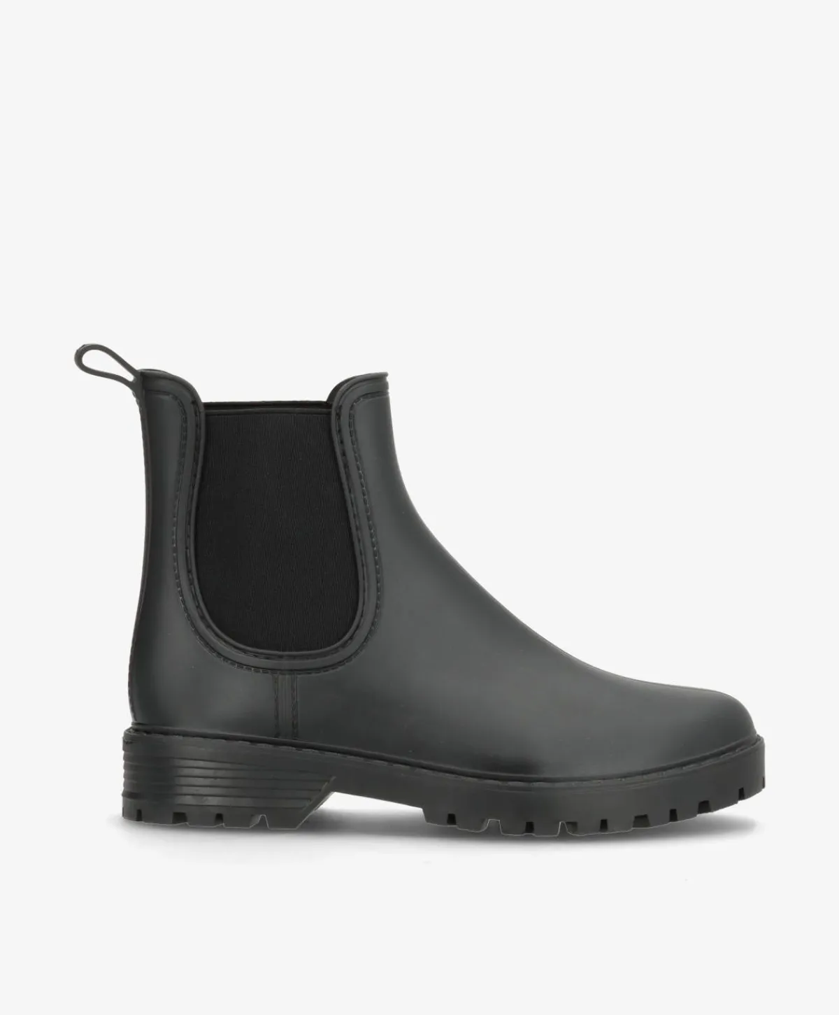 Gummistøvle fra Havanna Shoes er en moderne og praktisk gummistøvle i en klassisk sort farve. Det klassiske Chelsea-design med elastik i siderne og strop bagpå gør den nem at tage af og på, mens den vandafvisende overflade sikrer tørre fødder i alt slags vejr. Den kraftige, profilerede ydersål giver et solidt greb og stabilitet på både våde og glatte underlag.