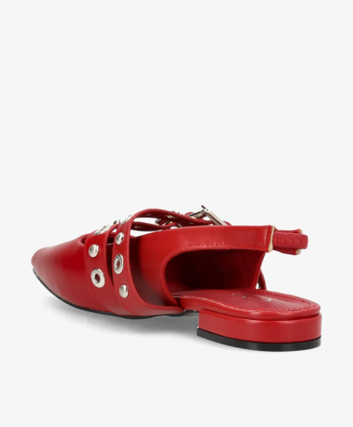 AURAY ballerinaen er et edgy take på den klassiske flade sko. Designet kombinerer skarpt spidset snude, dobbelt spænde-detaljer og sølvfarvede nitter med en moderne slingback-rem, der gør skoen nem at hoppe i. Den bløde vinrøde overflade tilføjer varme og kontrast til det rå hardware-look – perfekt til dig, der elsker feminine styles med attitude.