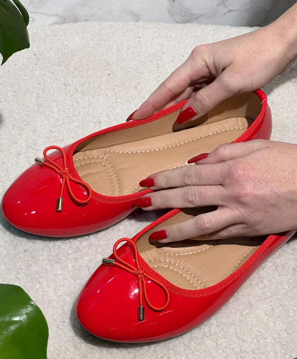 Klassisk og stilren ballerina, som virkelig kan give dit outfit et feminint touch. Modellen fåes i flere forskellige farver.