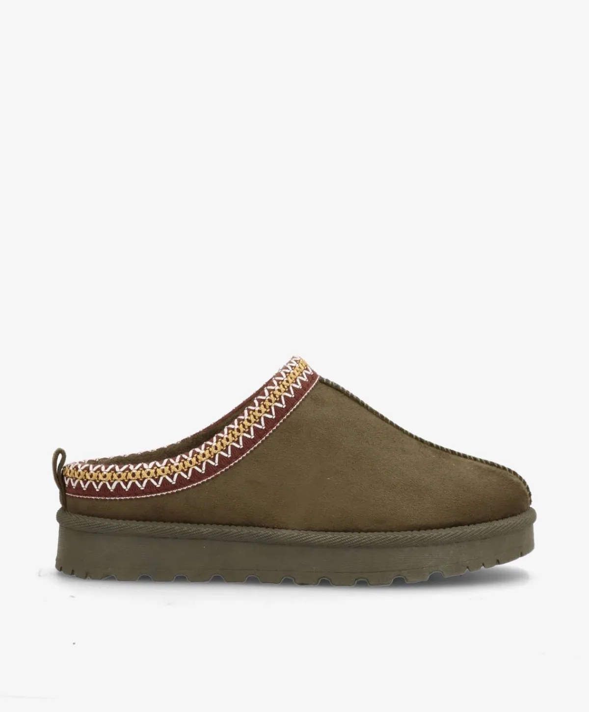 Den bløde inderside sikrer god komfort, mens ydersålen giver stabilitet i hverdagen. VAIL i khaki er nem at kombinere med både loungewear og afslappede outfits.