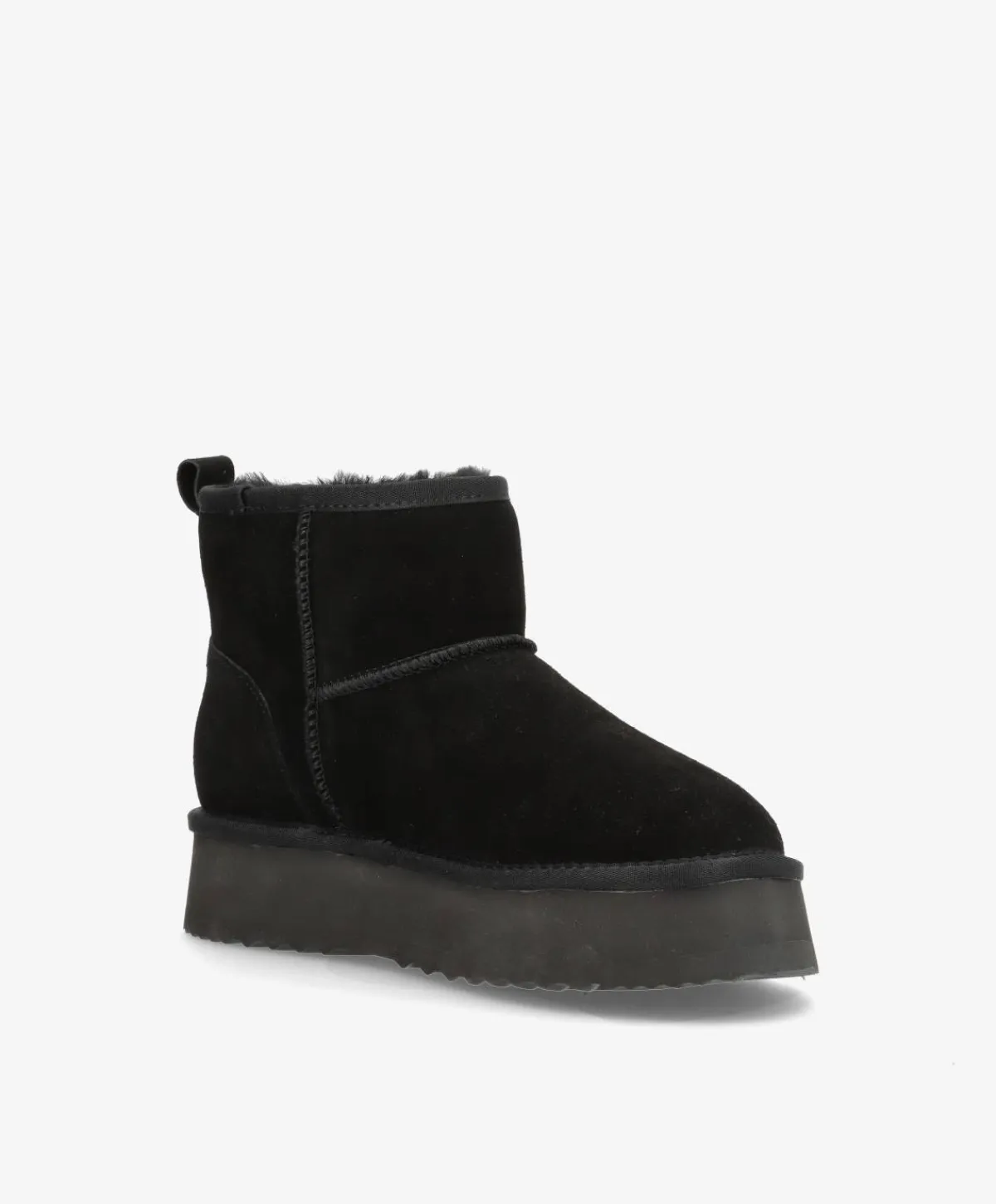 De lækreste bamsestøvler i en klassisk sort – perfekte til efterårsuniformen. De bløde støvler er lavet i et flot ruskind og har en høj sål, som giver et chunky look og løfter lidt. Støvlerne har ægte uld foring, som holder foden varm og giver ekstra komfort. De er nemme at påføre og er super komfortable, så de roligt kan bæres hele dagen. De fine bamsestøvler har desuden tydelige syninger, som bryder det rene design lidt.