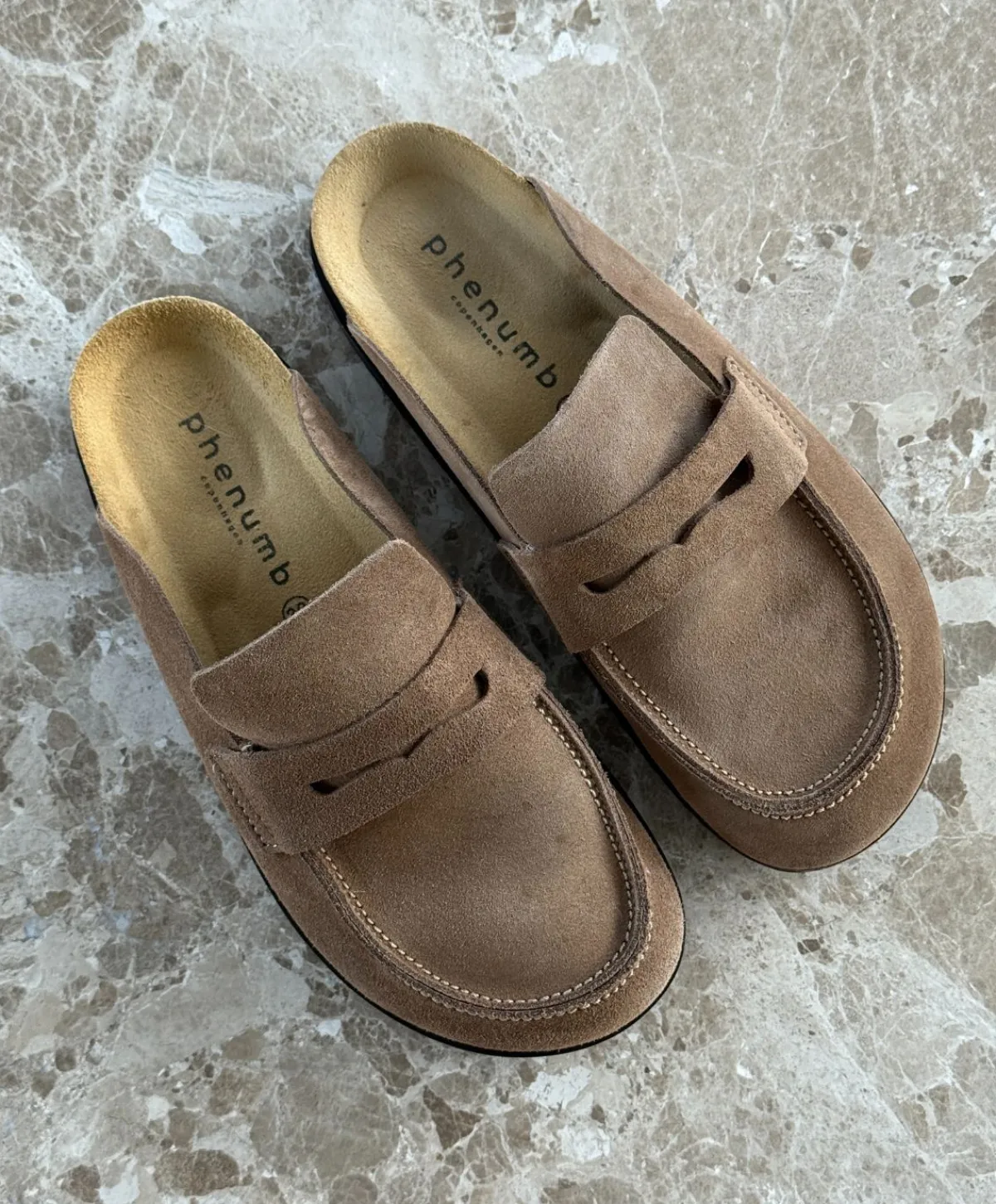 OCTAVIA er en moderne fortolkning af den klassiske mokkasin – skabt som en mule i blødt ruskind, der kombinerer stil og komfort på den mest afslappede måde. Den åbne hæl og brede rem over vristen giver et cool og ubesværet look, mens den ergonomiske korksål tilføjer en naturlig støtte og en let følelse under foden.
