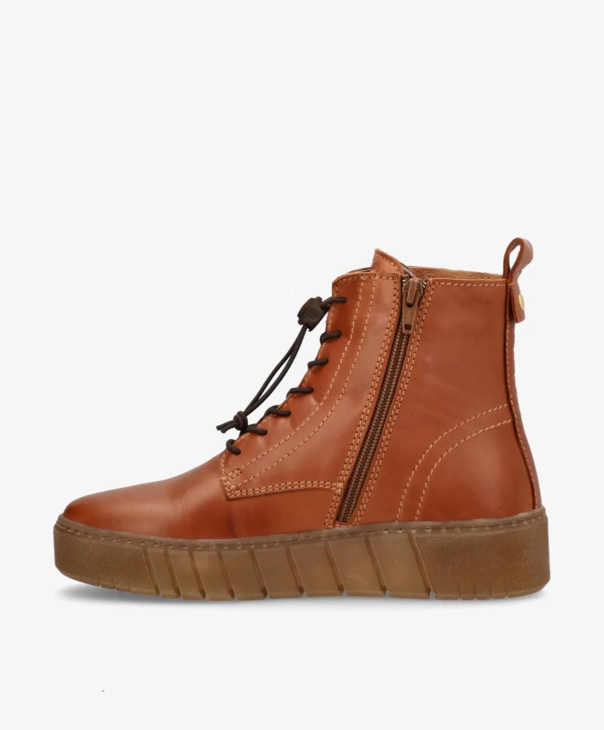 MOOVED LACE i mellembrunt læder er den perfekte støvle til dig, der vil kombinere komfort, kvalitet og et moderne udtryk i én og samme sko. Det bløde og glatte læder giver støvlen et luksuriøst og stilrent look, mens den høje gummisål sikrer en blød og fleksibel gang – perfekt til både byliv og hverdagsbrug.